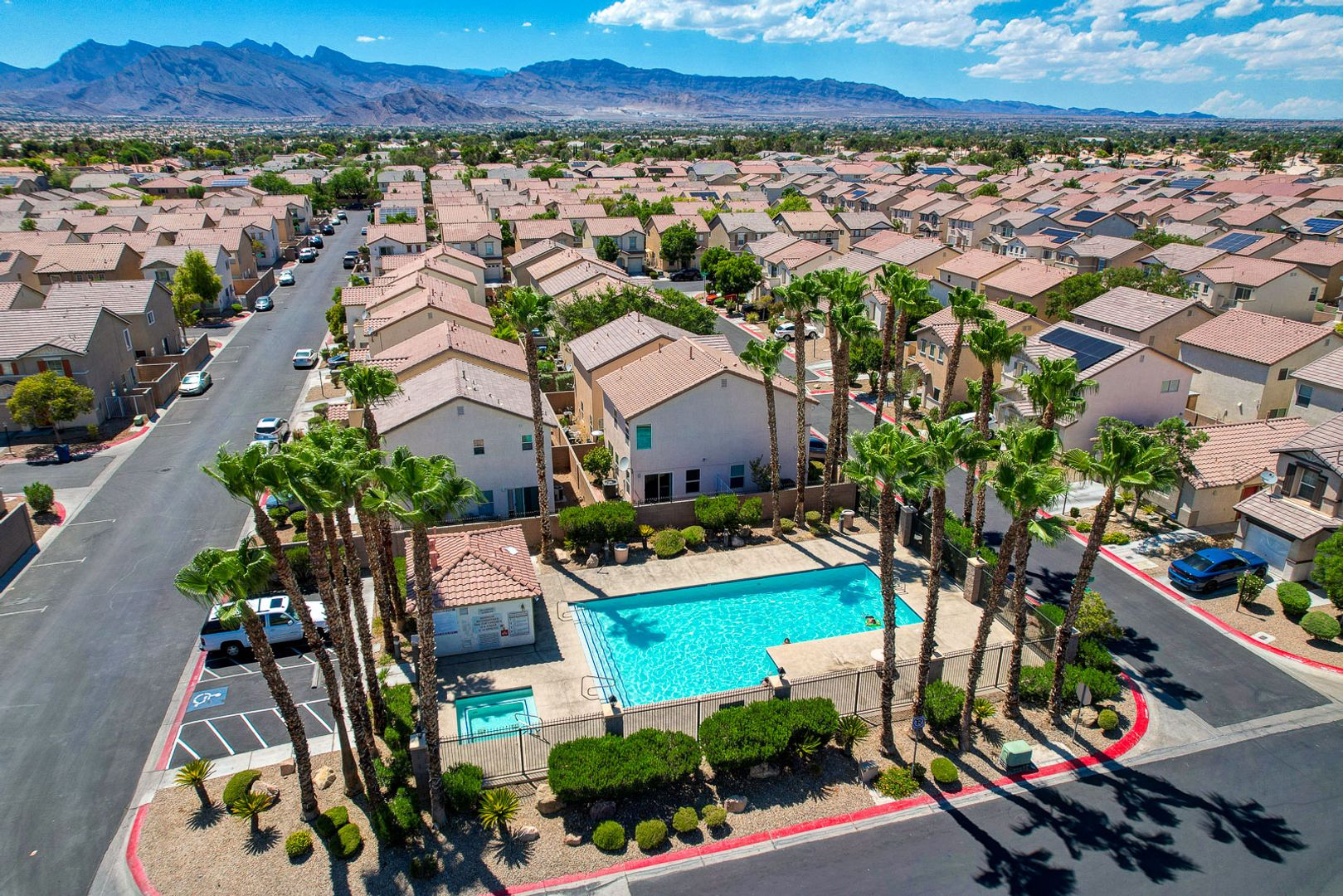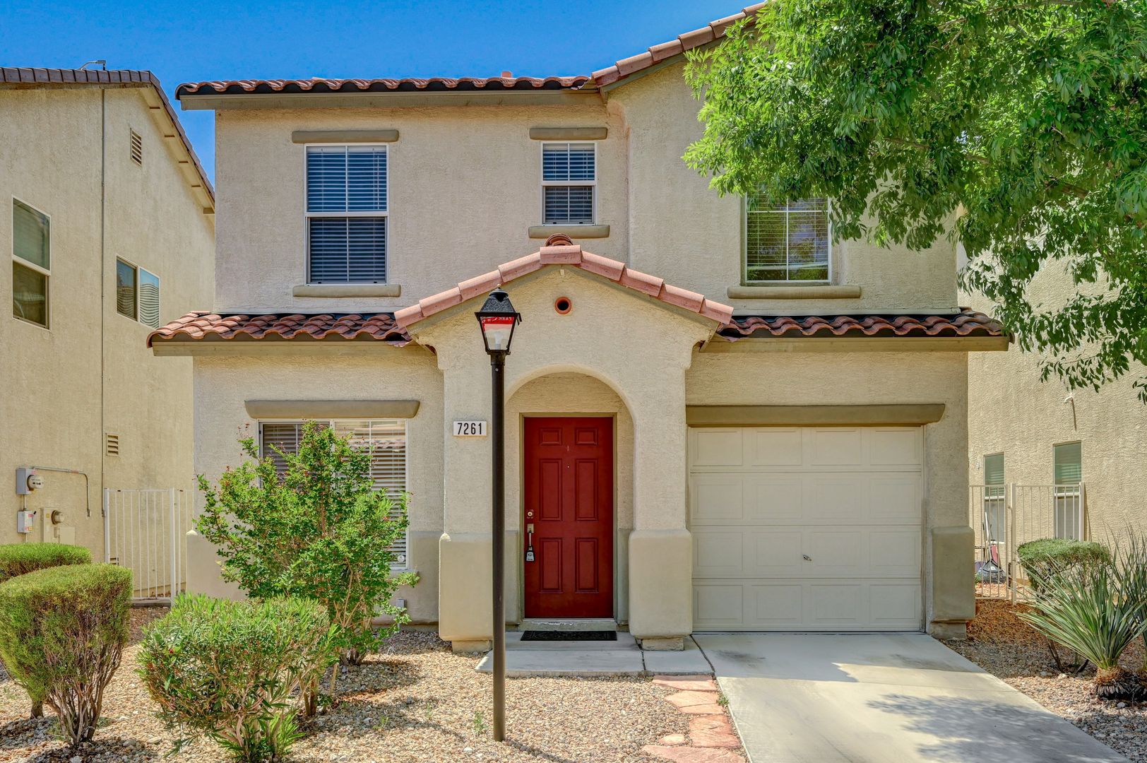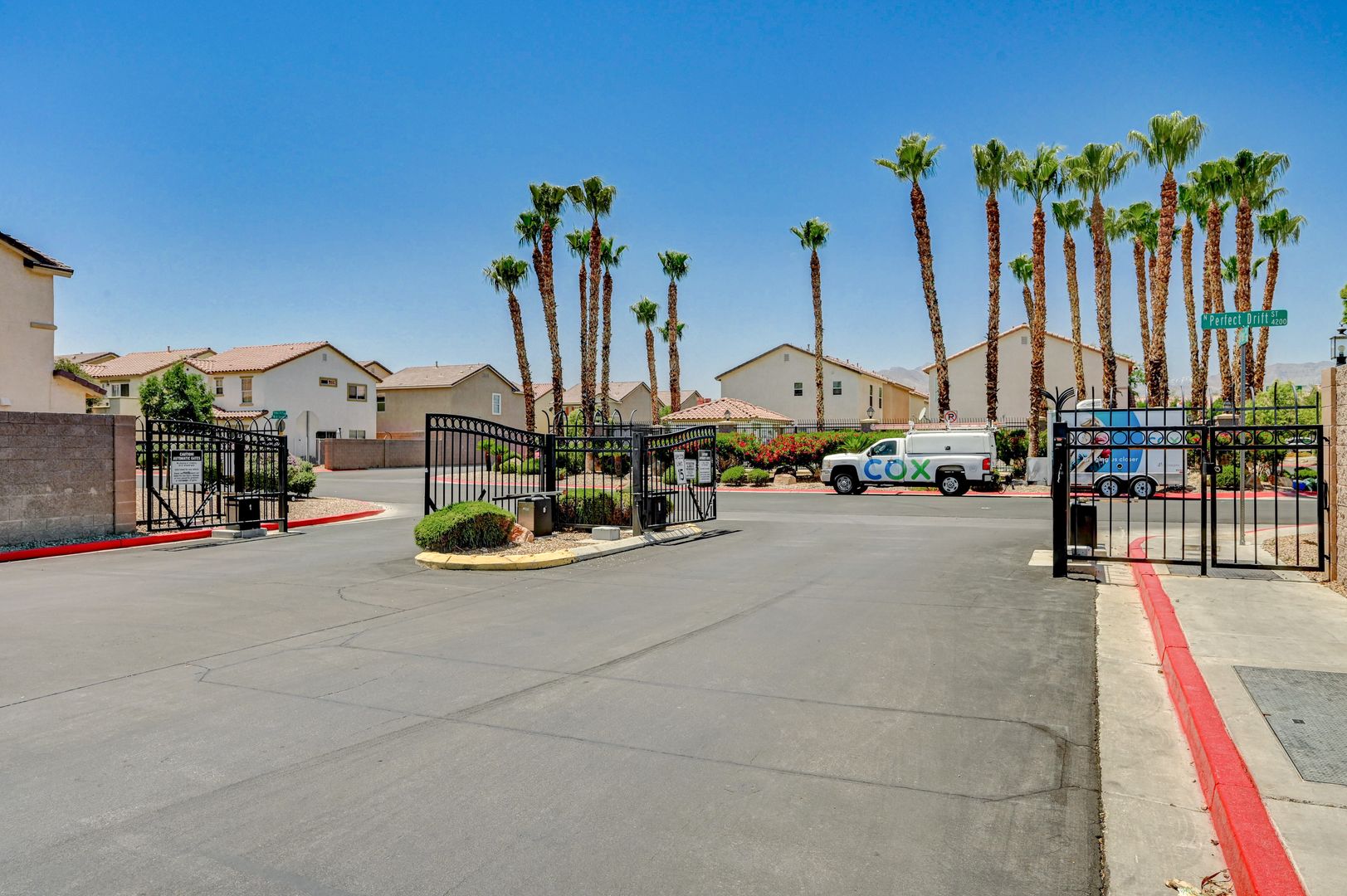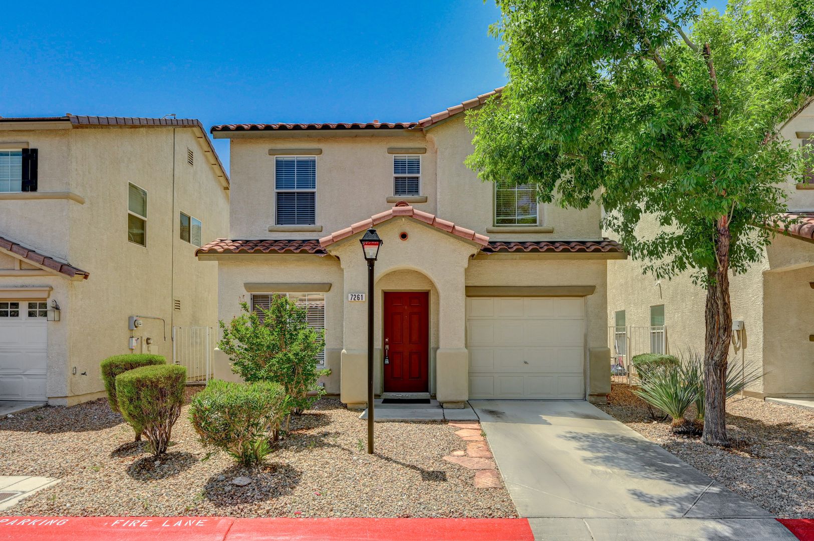 50% off First Months Rent! Welcome to this quaint two-story home in a gated Las Vegas community! Featuring 2 bedrooms, 1.5 bathrooms, a spacious loft, and a 1-car garage—with access to a community pool. Located less than 1/4 mile from shopping and dining. All bedrooms and the laundry room are upstairs, creating privacy from the main living areas. Downstairs offers tile flooring, a large living room, and a kitchen with granite counters, white appliances, and an island. A convenient half bath is also on the main floor. Upstairs, both bedrooms and the loft feature brand-new carpet. The primary bedroom includes a cute walk-in closet, and the loft provides flexible space for a second living area, office, or playroom. The fully enclosed backyard with a patio is easy to maintain with a side gate access. A perfect blend of comfort, function, and community living! Nearby access to freeway 95 less than a minute!