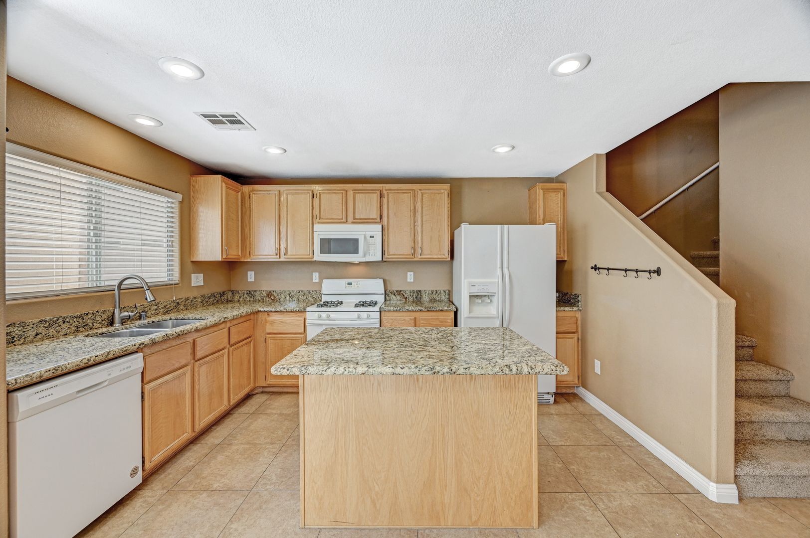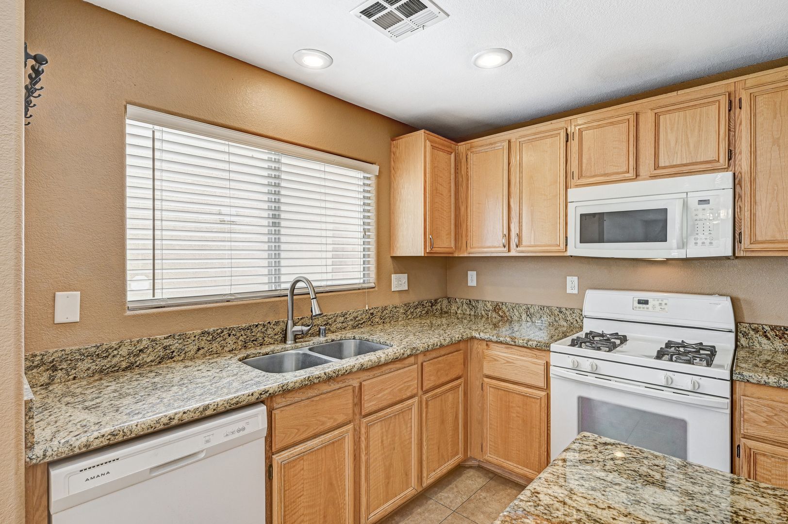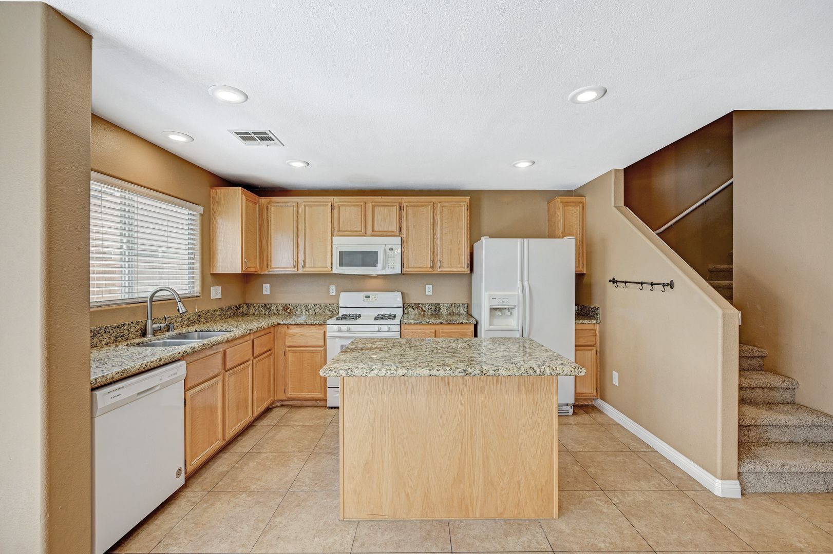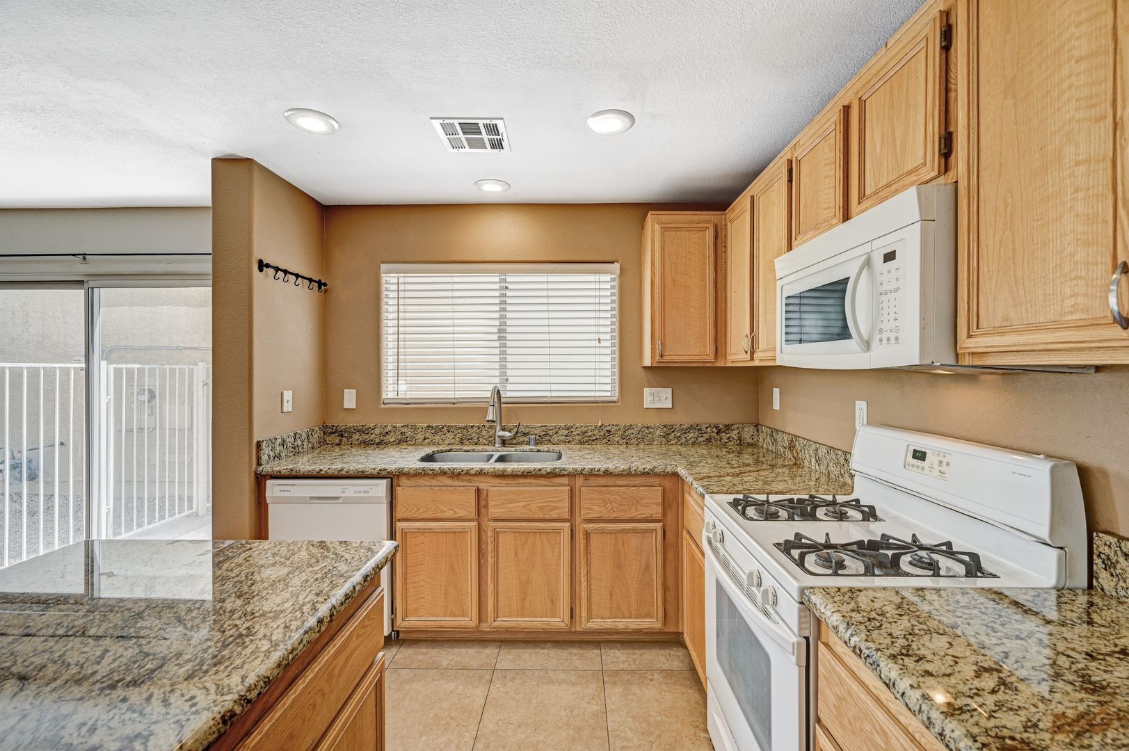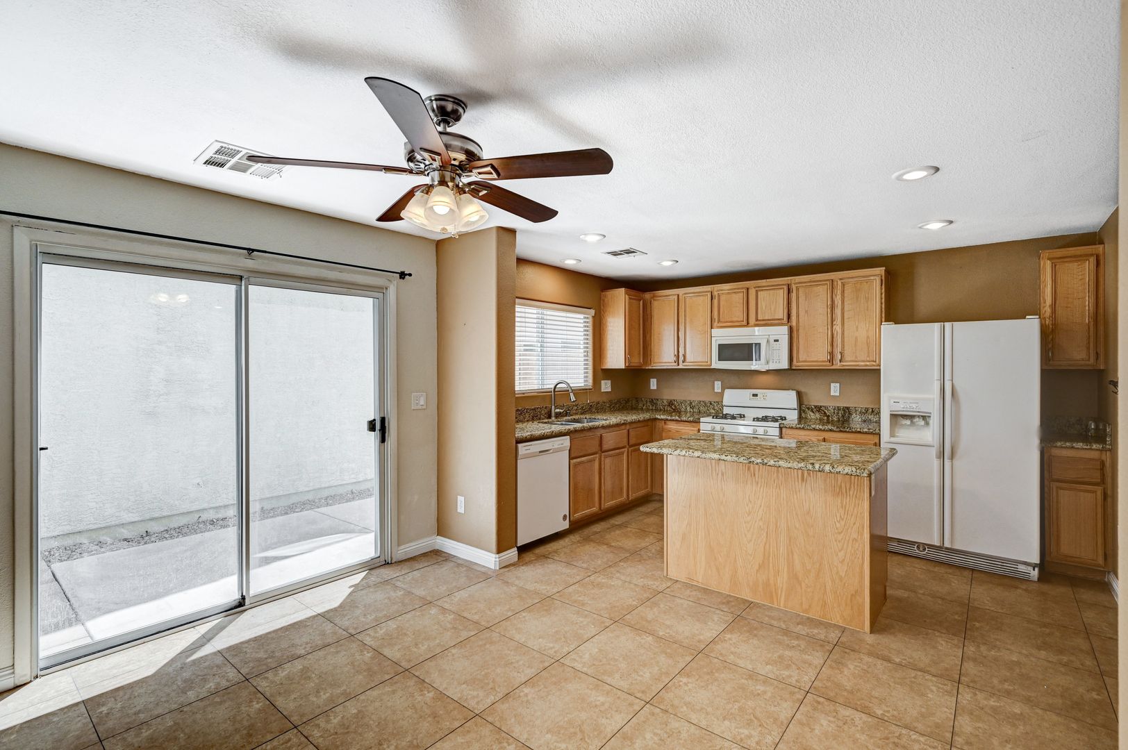 50% off First Months Rent! Welcome to this quaint two-story home in a gated Las Vegas community! Featuring 2 bedrooms, 1.5 bathrooms, a spacious loft, and a 1-car garage—with access to a community pool. Located less than 1/4 mile from shopping and dining. All bedrooms and the laundry room are upstairs, creating privacy from the main living areas. Downstairs offers tile flooring, a large living room, and a kitchen with granite counters, white appliances, and an island. A convenient half bath is also on the main floor. Upstairs, both bedrooms and the loft feature brand-new carpet. The primary bedroom includes a cute walk-in closet, and the loft provides flexible space for a second living area, office, or playroom. The fully enclosed backyard with a patio is easy to maintain with a side gate access. A perfect blend of comfort, function, and community living! Nearby access to freeway 95 less than a minute!