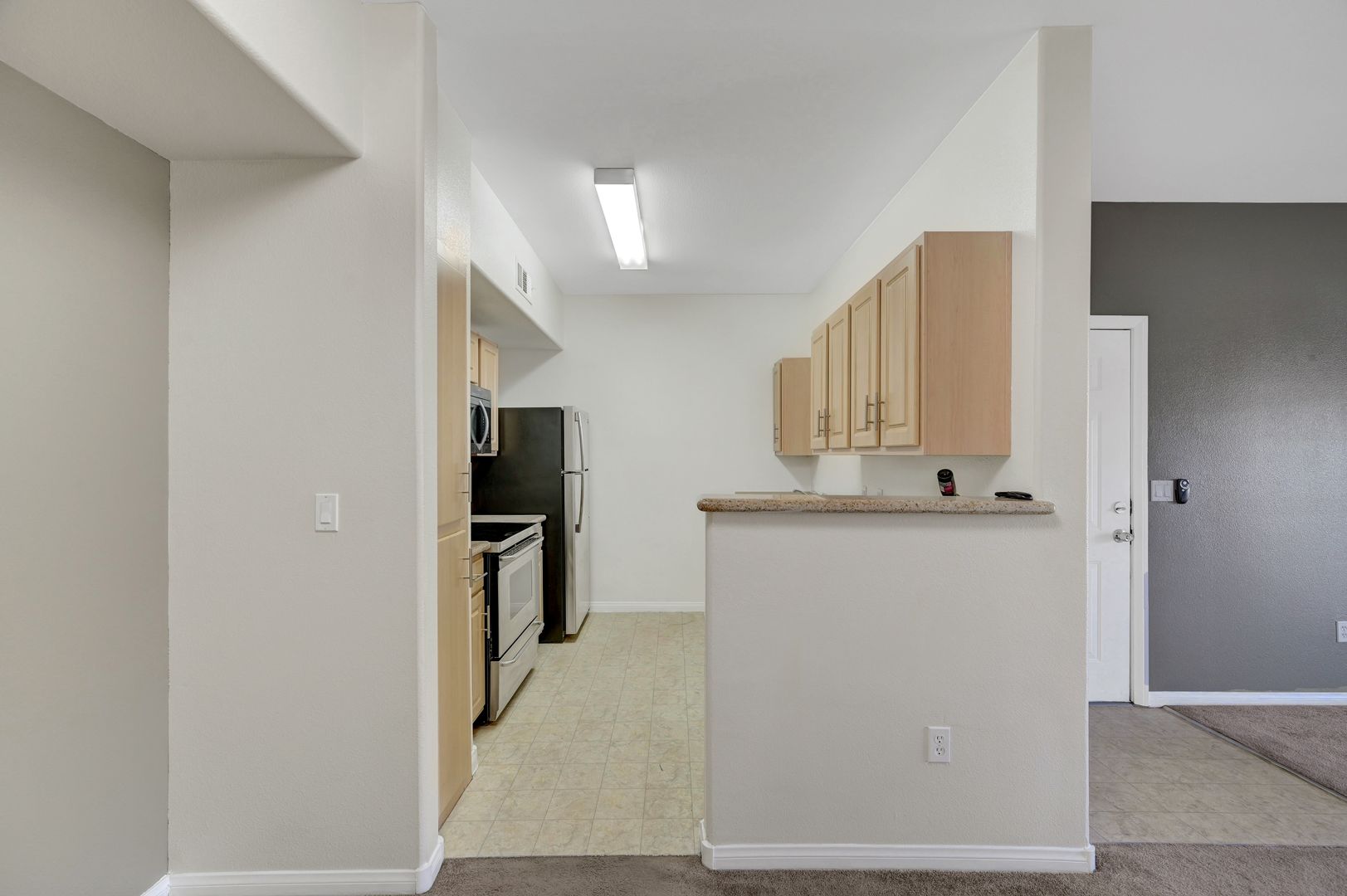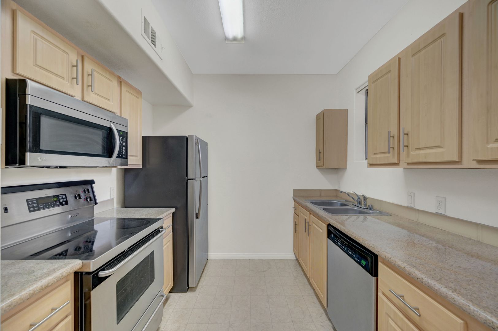 Carpet and linoleum flooring throughout, stainless steel kitchen appliances, ceiling fans, and both washer and dryer provided. Community has walking paths, pool/spa and playground park for residents use.
