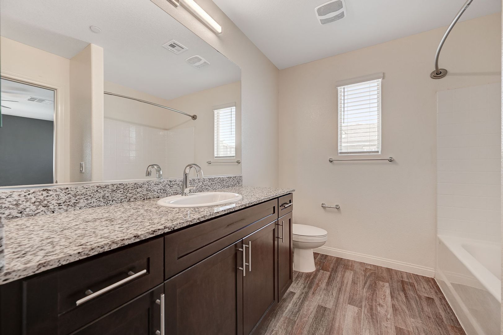 50% OFF FIRST MONTH RENT! ALMOST NEW TOWNHOME IN GATED COMMUNITY WITH VIEWS*COMMUNITY POOL * SPA!!!! THIS 3 BEDROOM 2.5 BATH TOWNHOME TOTALLY SHOWS PRIDE OF OWNERSHIP! FIRST FLOOR FEATURES ARE SPACIOUS FAMILY ROOM WITH BEAUTIFUL EXECUTIVE LAMINATE WOOD FLOORING*HUGE KITCHEN WITH STAINLESS STEEL APPLIANCES*GRANITE COUNTERTOPS*LOTS OF CABINETRY! SECOND FLOOR COMPLETE WITH LOFT FOR FAMILY MEETINGS*3 NICE SIZED BEDROOMS * PRIMARY BEDROOM WITH LARGE BATHROOM & WALK IN CLOSET! VERY CLOSE TO FREEWAY ACCESS AND SHOPPING! COME AND SEE YOUR NEW HOME!