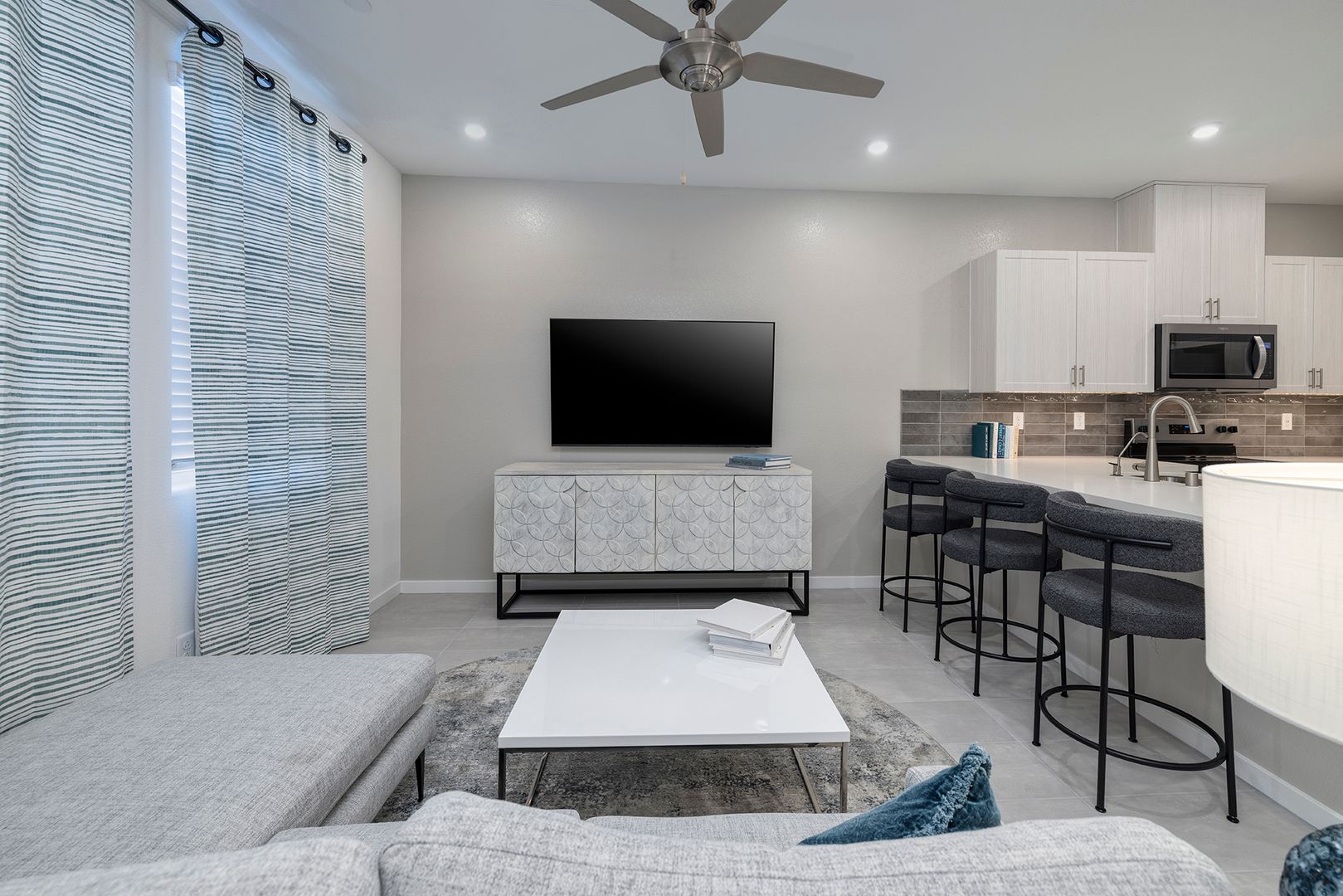 Welcome to this fully furnished, brand new townhome located in the exciting city of Las Vegas, home of the Golden Knight, Raiders and Formula 1. This property boasts three spacious bedrooms and 2.5 well-appointed bathrooms, offering ample space for your comfort and convenience. The home comes with a two-car garage, providing secure parking and additional storage. One of the standout features of this townhome is the inclusion of solar panels, a sustainable solution that can help reduce your energy bills. The modern furniture included in the home is stylish and comfortable, adding to the overall appeal of the property. The location offers an easy commute to Nellis Air Force and Creech, making it an ideal choice for those who value convenience. Experience the perfect blend of luxury and sustainability in this brand new townhome. 50% OFF YOUR FIRST FULL MONTHS RENT!